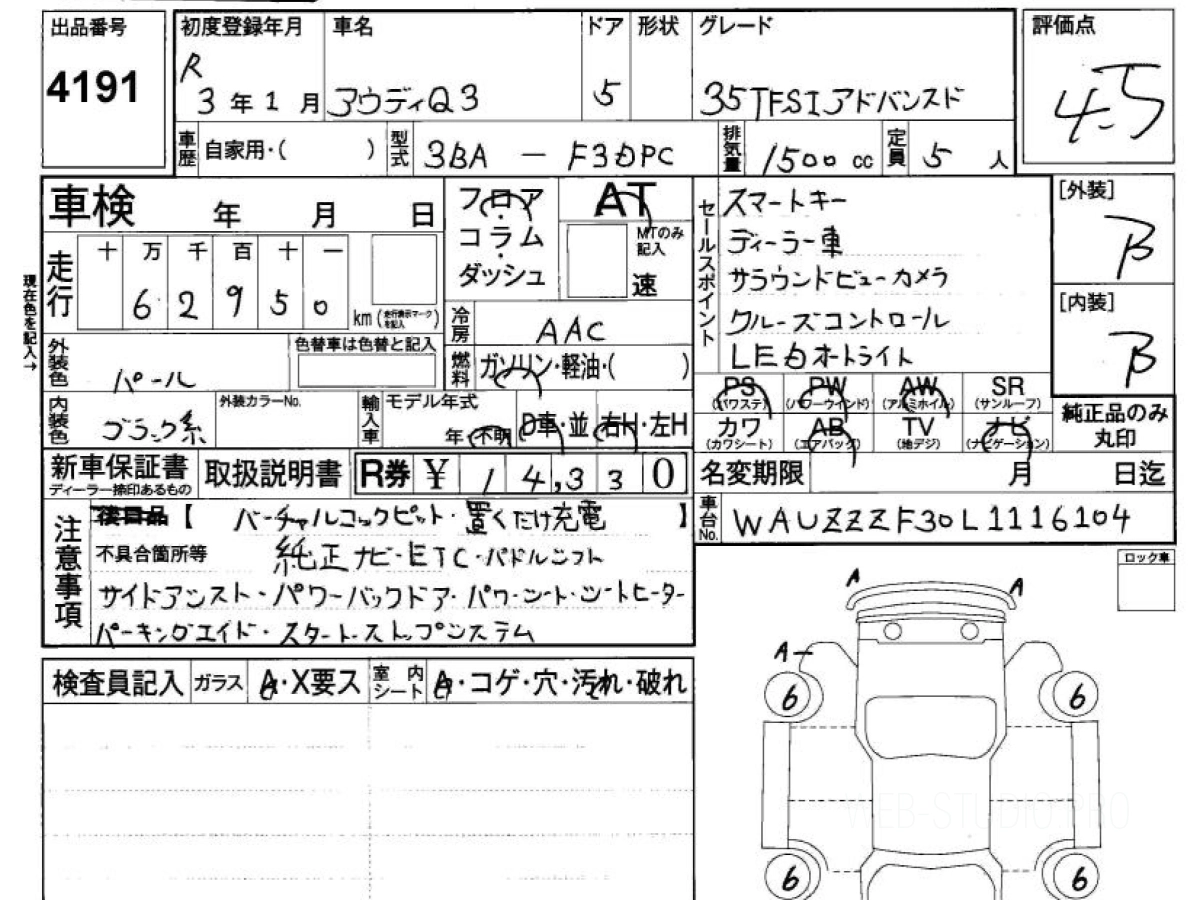 Купить АУДИ Ку3 2021 года выпуска можно под заказ с аукционов Японии во Владивостоке с доставкой в Москву или любой другой город России.