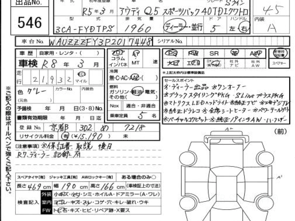Купить АУДИ Ку5 2023 года выпуска можно под заказ с аукционов Японии во Владивостоке с доставкой в Москву или любой другой город России.
