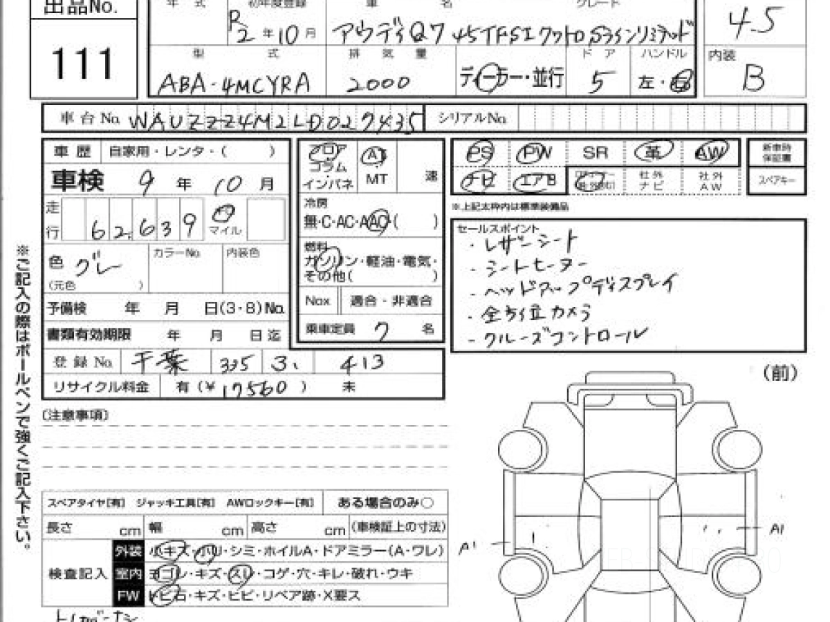 Купить АУДИ Ку7 2020 года выпуска можно под заказ с аукционов Японии во Владивостоке с доставкой в Москву или любой другой город России.