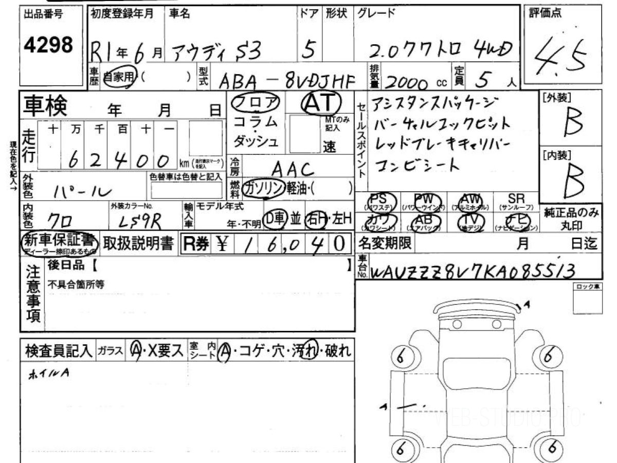Купить АУДИ С3 2019 года выпуска можно под заказ с аукционов Японии во Владивостоке с доставкой в Москву или любой другой город России.