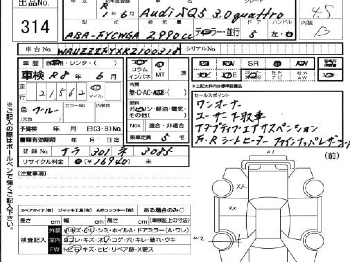 Купить АУДИ СКу5 2019 года выпуска можно под заказ с аукционов Японии во Владивостоке с доставкой в Москву или любой другой город России.