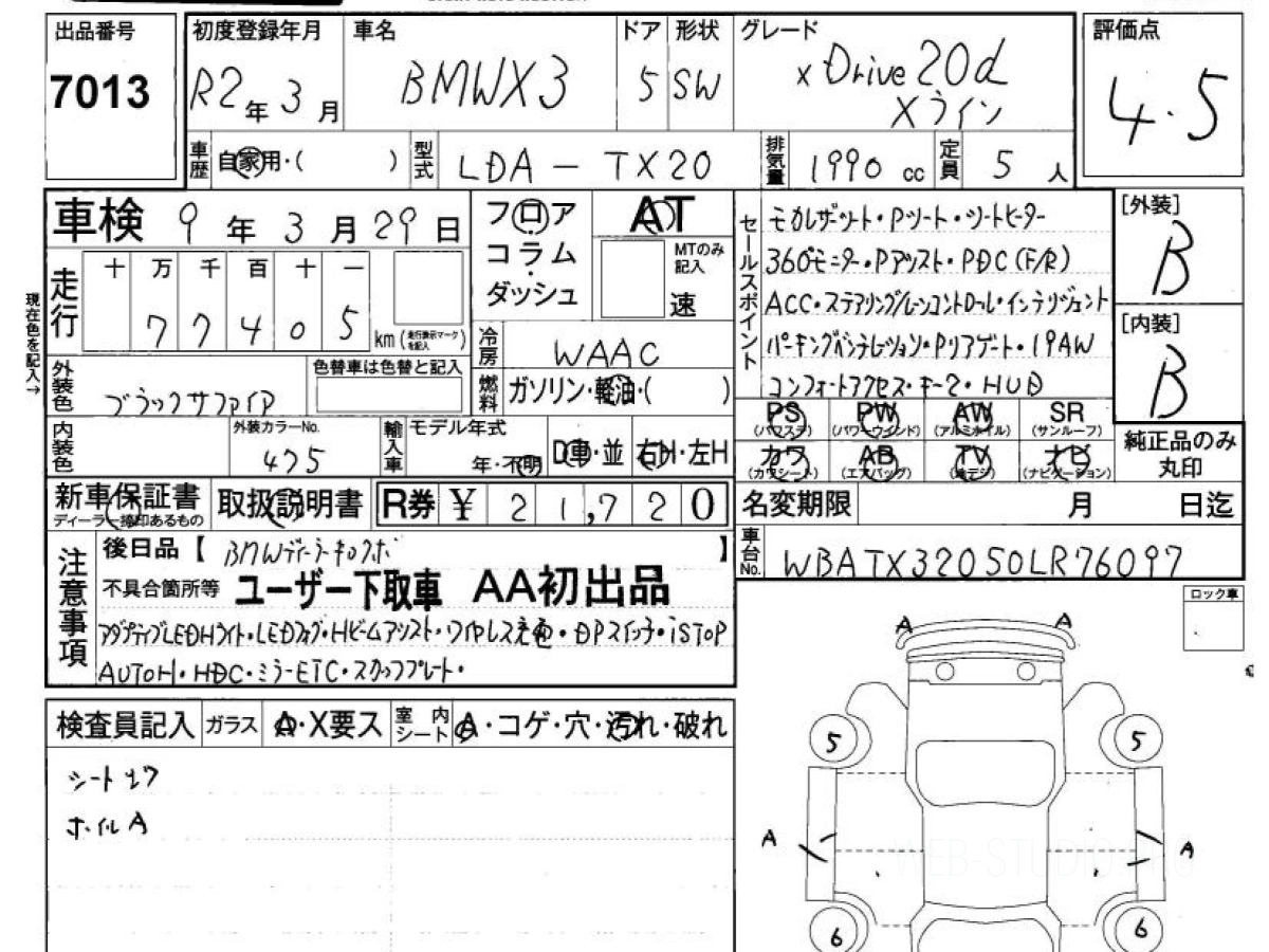 Купить БМВ Х3 2020 года выпуска можно под заказ с аукционов Японии во Владивостоке с доставкой в Москву или любой другой город России.