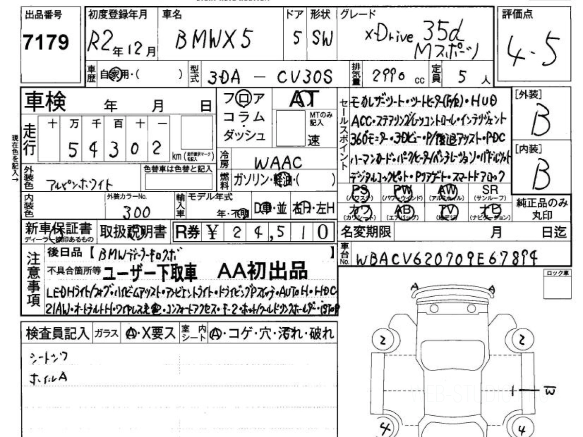 Цена на БМВ Х5 СЕРИИ CV30S 2020 с аукционов Японии зависит от состояния авто и комплектации, указана с расчётом пошлины, всех расходов с учетом доставки в Омск.