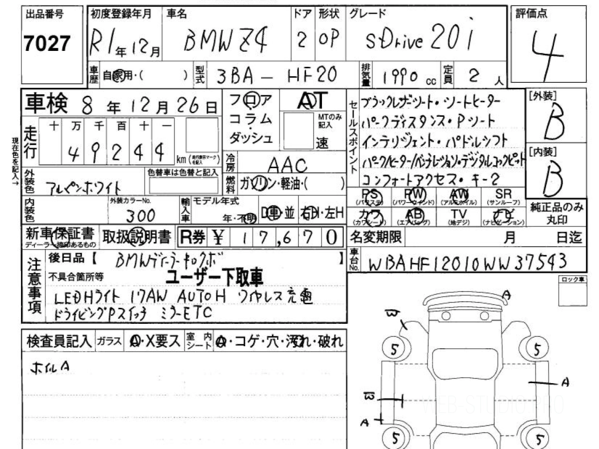 Цена на БМВ З4 HF20 2019 с аукционов Японии зависит от состояния авто и комплектации, указана с расчётом пошлины, всех расходов с учетом доставки в Омск.