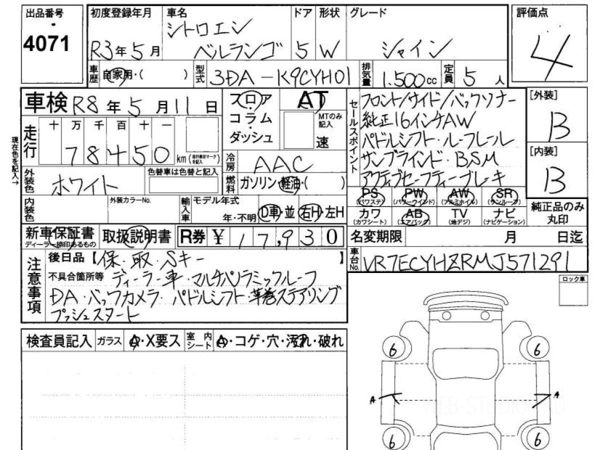 Купить СИТРОЕН БЕРЛИНГО 2021 года выпуска можно под заказ с аукционов Японии во Владивостоке с доставкой в Москву или любой другой город России.