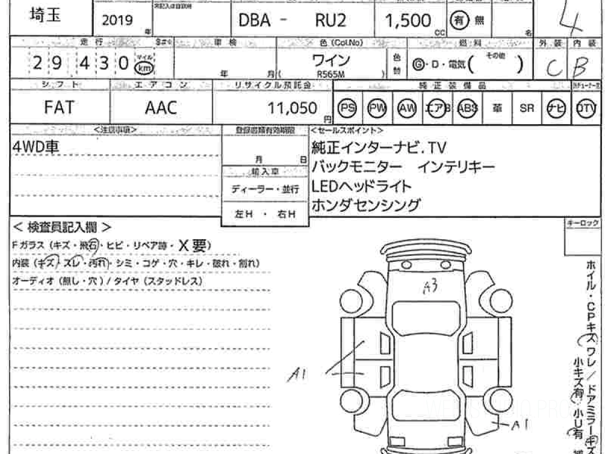- HONDA VEZEL RU2 2019