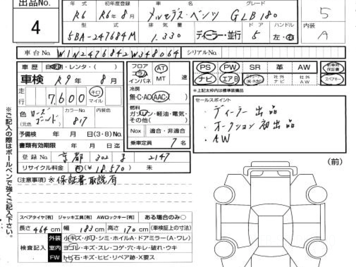Купить МЕРСЕДЕС-БЕНЦ ГЛБ 2024 года выпуска можно под заказ с аукционов Японии во Владивостоке с доставкой в Москву или любой другой город России.
