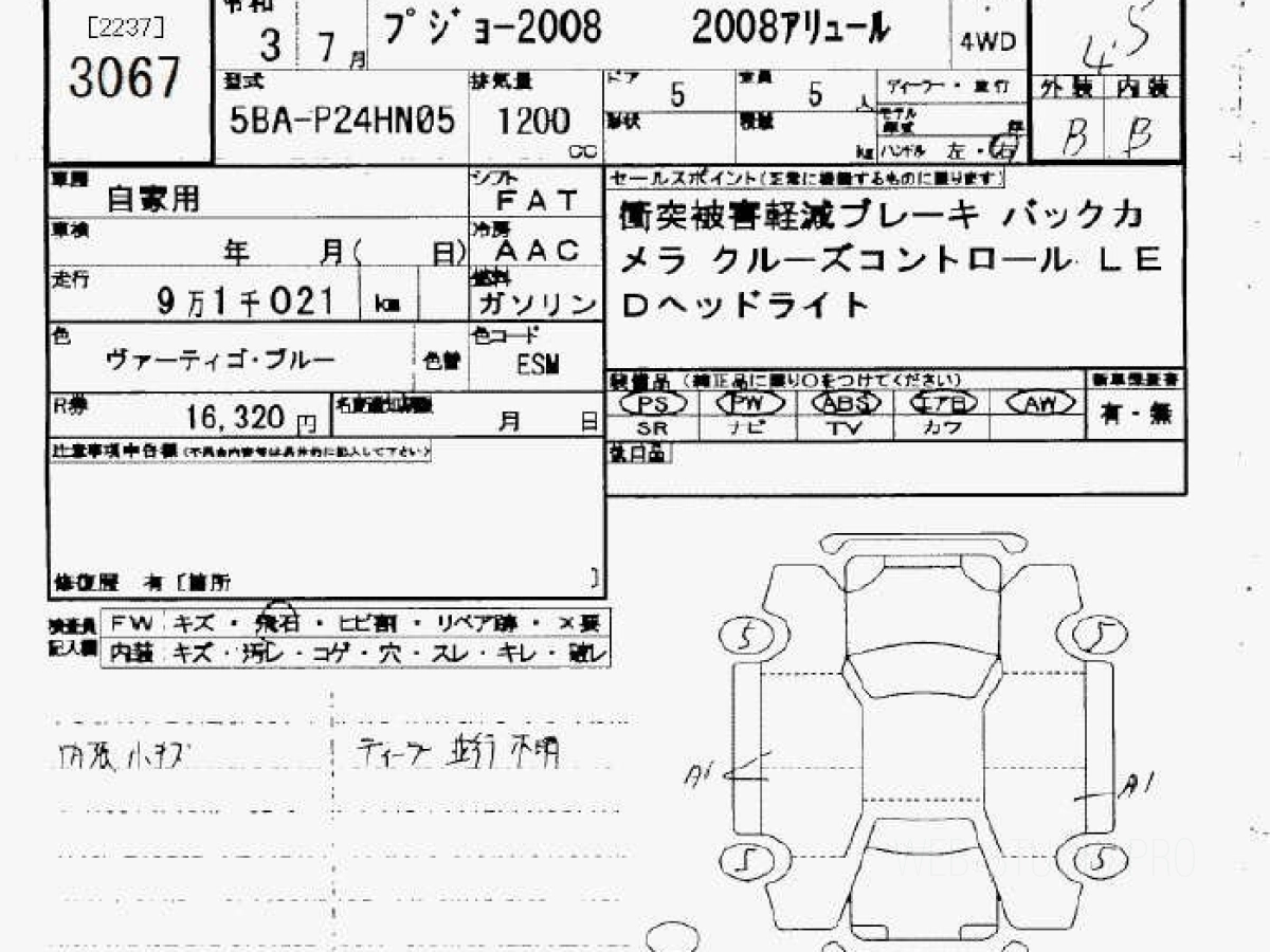 Купить ПЕЖО 2008 2021 года выпуска можно под заказ с аукционов Японии во Владивостоке с доставкой в Москву или любой другой город России.