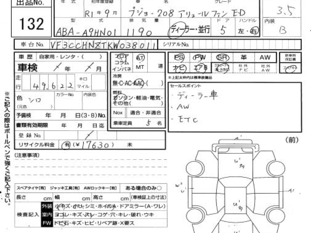 Купить ПЕЖО 208 2019 года выпуска можно под заказ с аукционов Японии во Владивостоке с доставкой в Москву или любой другой город России.