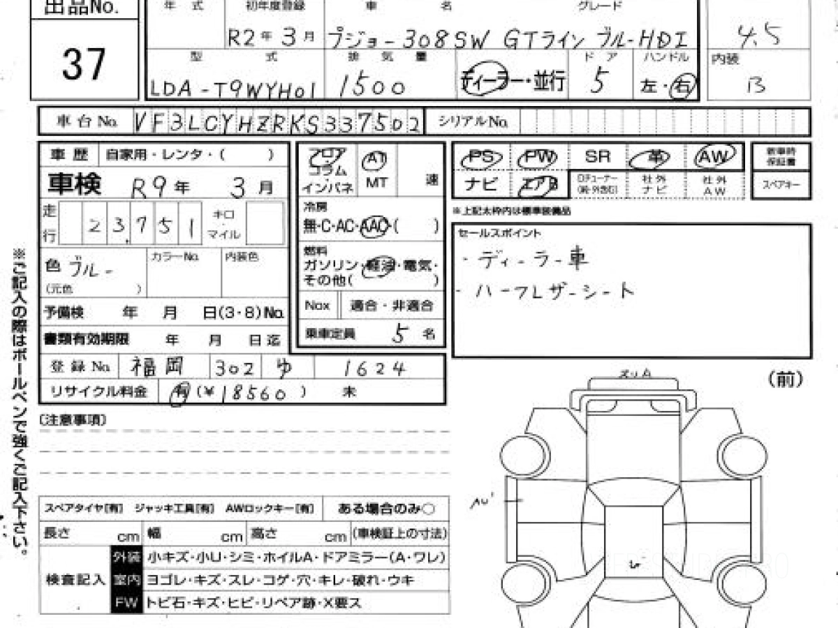 Купить ПЕЖО 308 2020 года выпуска можно под заказ с аукционов Японии во Владивостоке с доставкой в Москву или любой другой город России.