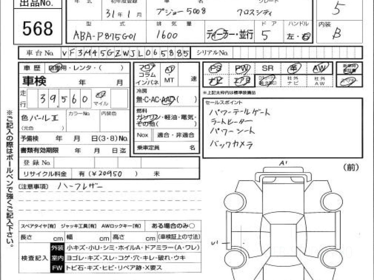 Купить ПЕЖО 5008 2019 года выпуска можно под заказ с аукционов Японии во Владивостоке с доставкой в Москву или любой другой город России.