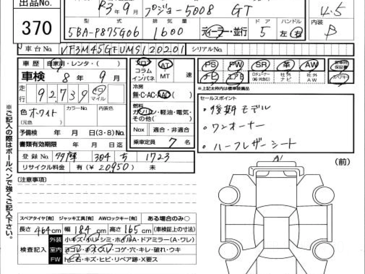 Купить ПЕЖО 5008 2021 года выпуска можно под заказ с аукционов Японии во Владивостоке с доставкой в Москву или любой другой город России.