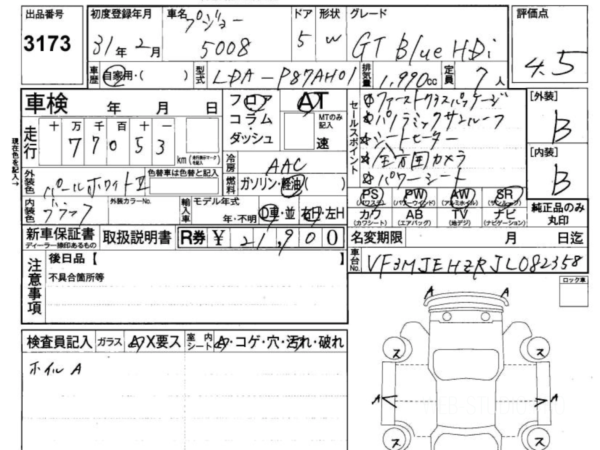 Купить ПЕЖО 5008 2019 года выпуска можно под заказ с аукционов Японии во Владивостоке с доставкой в Москву или любой другой город России.