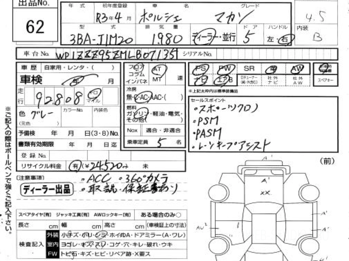 Купить ПОРШЕ МАКАН 2021 года выпуска можно под заказ с аукционов Японии во Владивостоке с доставкой в Москву или любой другой город России.