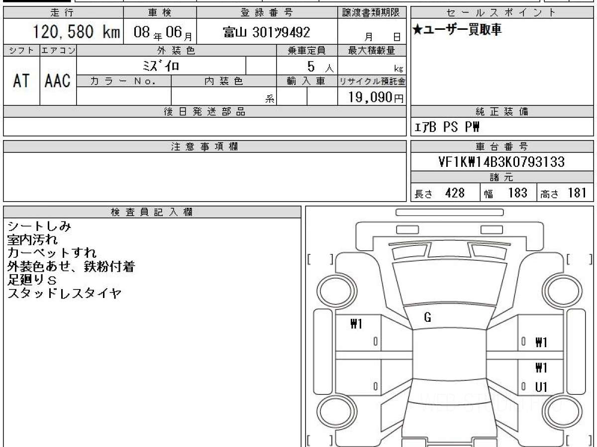 Купить РЕНО КАНГУ 2019 года выпуска можно под заказ с аукционов Японии во Владивостоке с доставкой в Москву или любой другой город России.