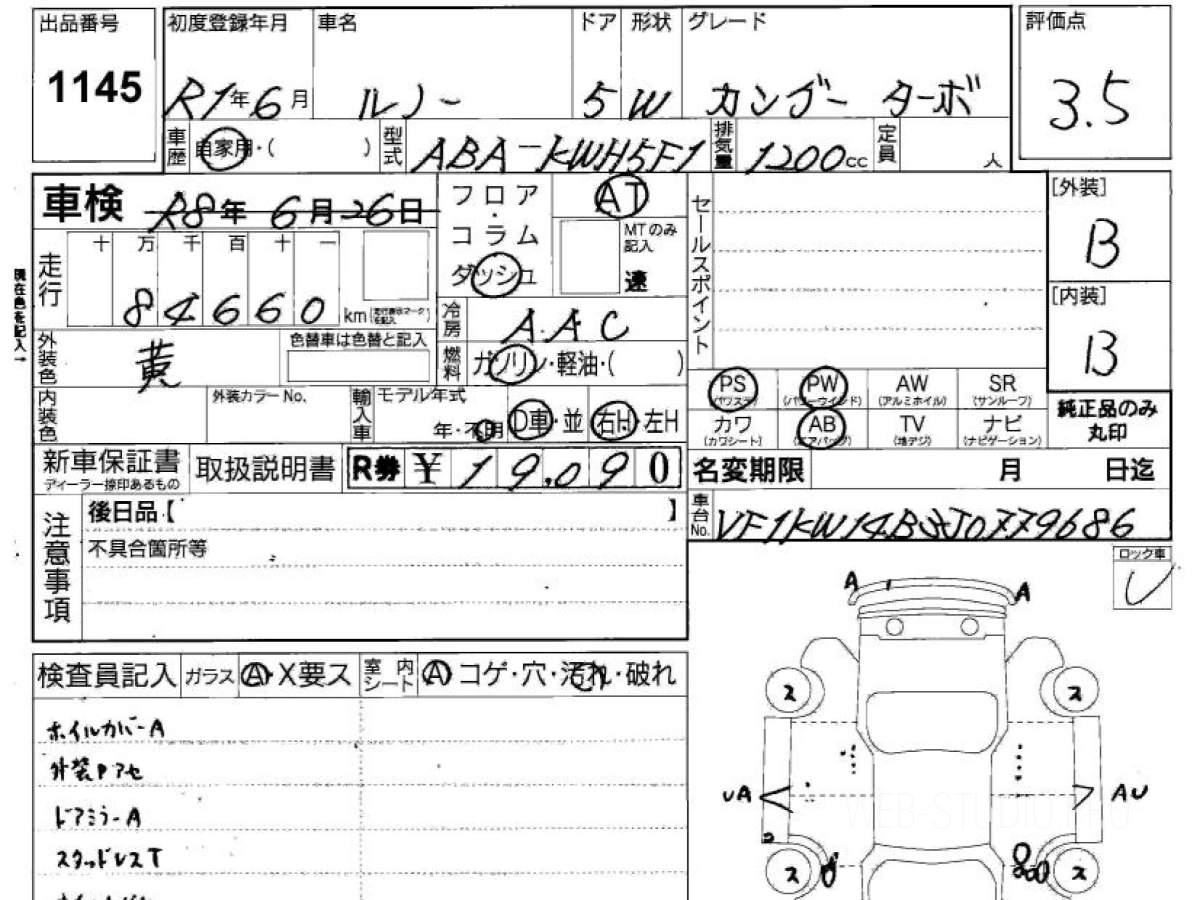 Купить РЕНО КАНГУ 2019 года выпуска можно под заказ с аукционов Японии во Владивостоке с доставкой в Москву или любой другой город России.