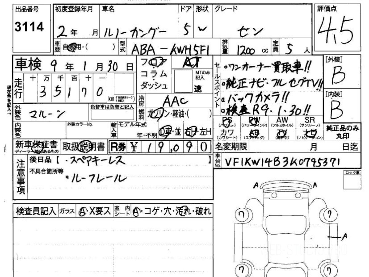 Купить РЕНО КАНГУ 2020 года выпуска можно под заказ с аукционов Японии во Владивостоке с доставкой в Москву или любой другой город России.