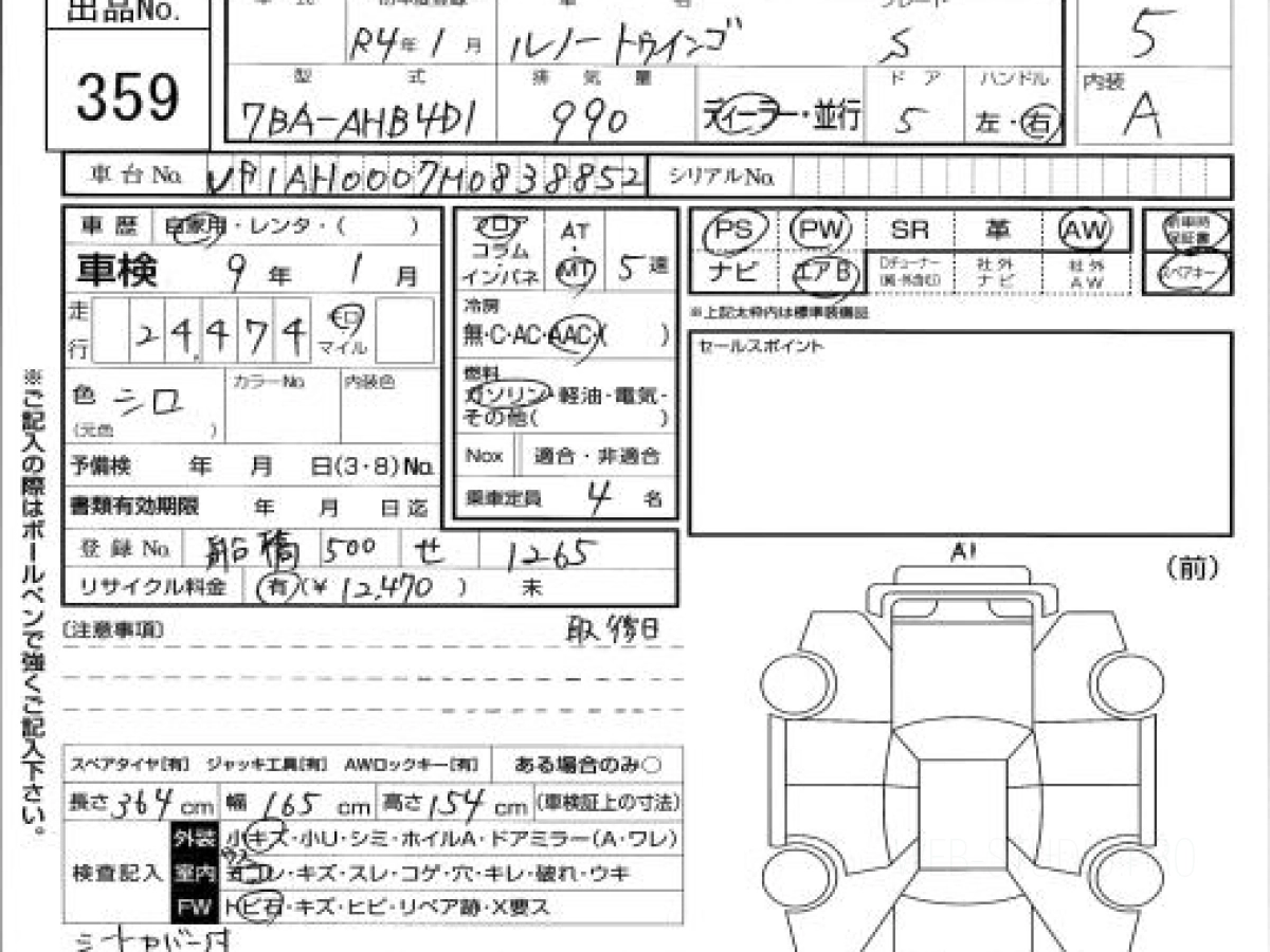 Купить РЕНО ТВИНГО 2022 года выпуска можно под заказ с аукционов Японии во Владивостоке с доставкой в Москву или любой другой город России.