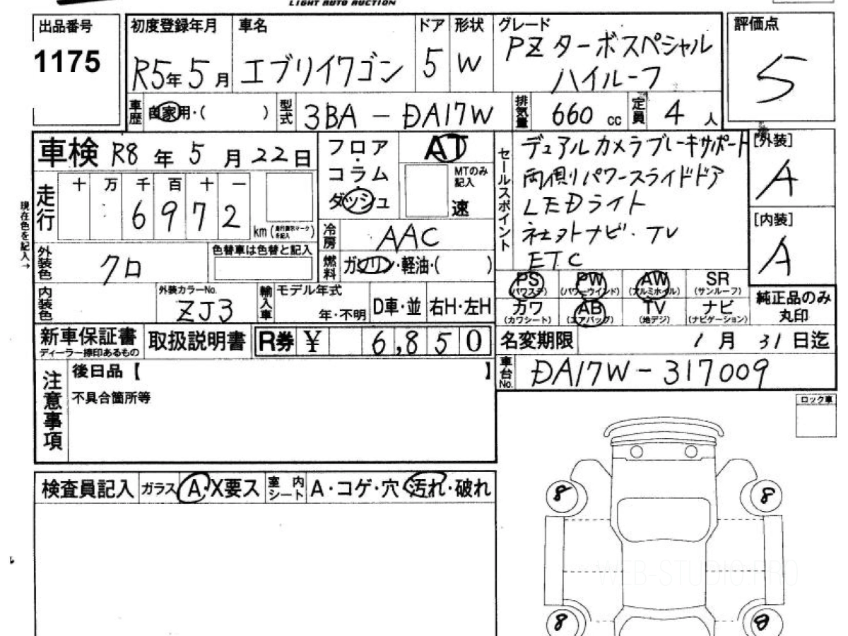 Цена на СУЗУКИ ЭВРИ ВАГОН DA17W 2023 с аукционов Японии зависит от состояния авто и комплектации, указана с расчётом пошлины, всех расходов с учетом доставки в Омск.