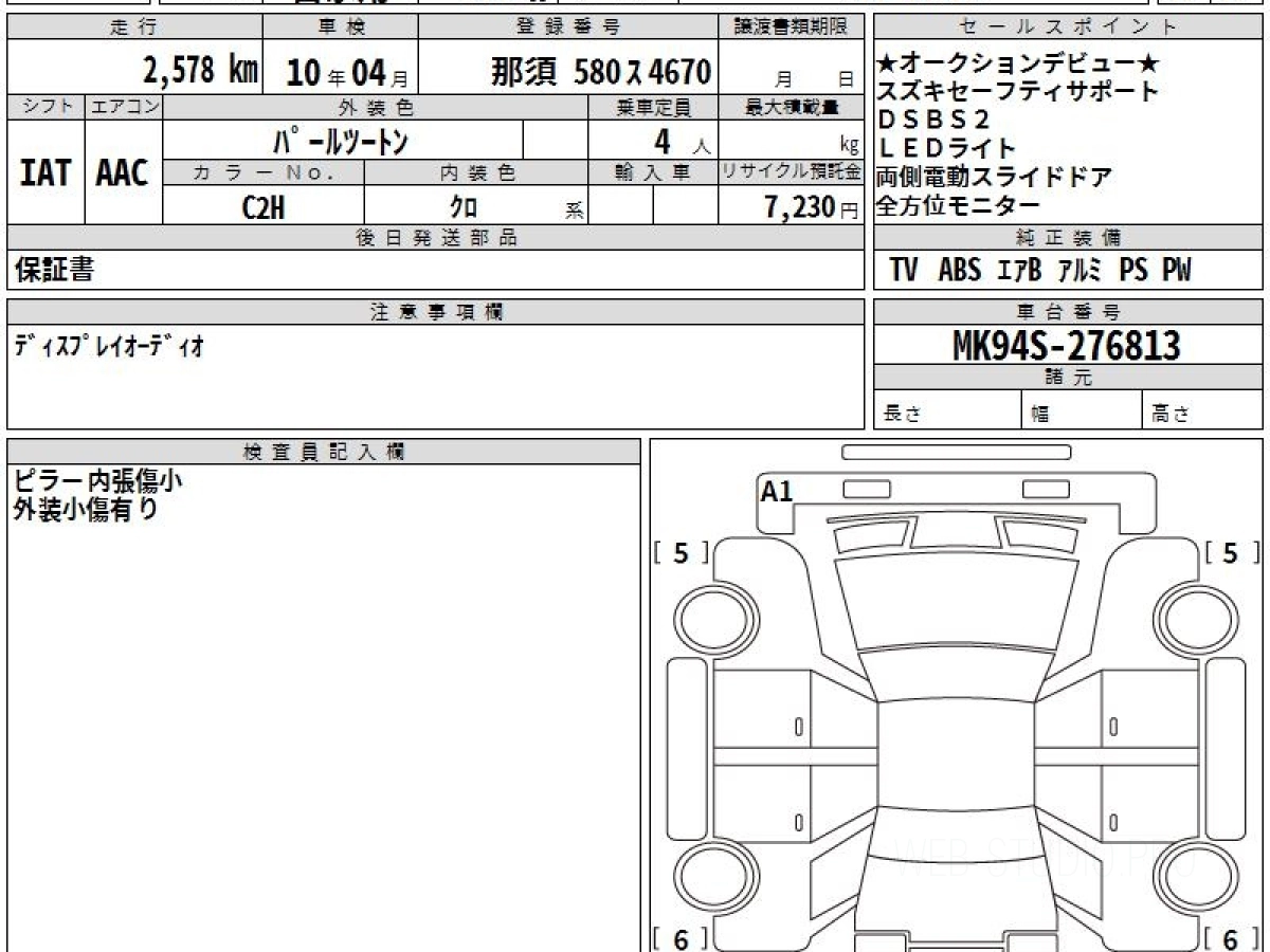 Цена на СУЗУКИ СПАСИА MK94S 2025 с аукционов Японии зависит от состояния авто и комплектации, указана с расчётом пошлины, всех расходов с учетом доставки в Омск.