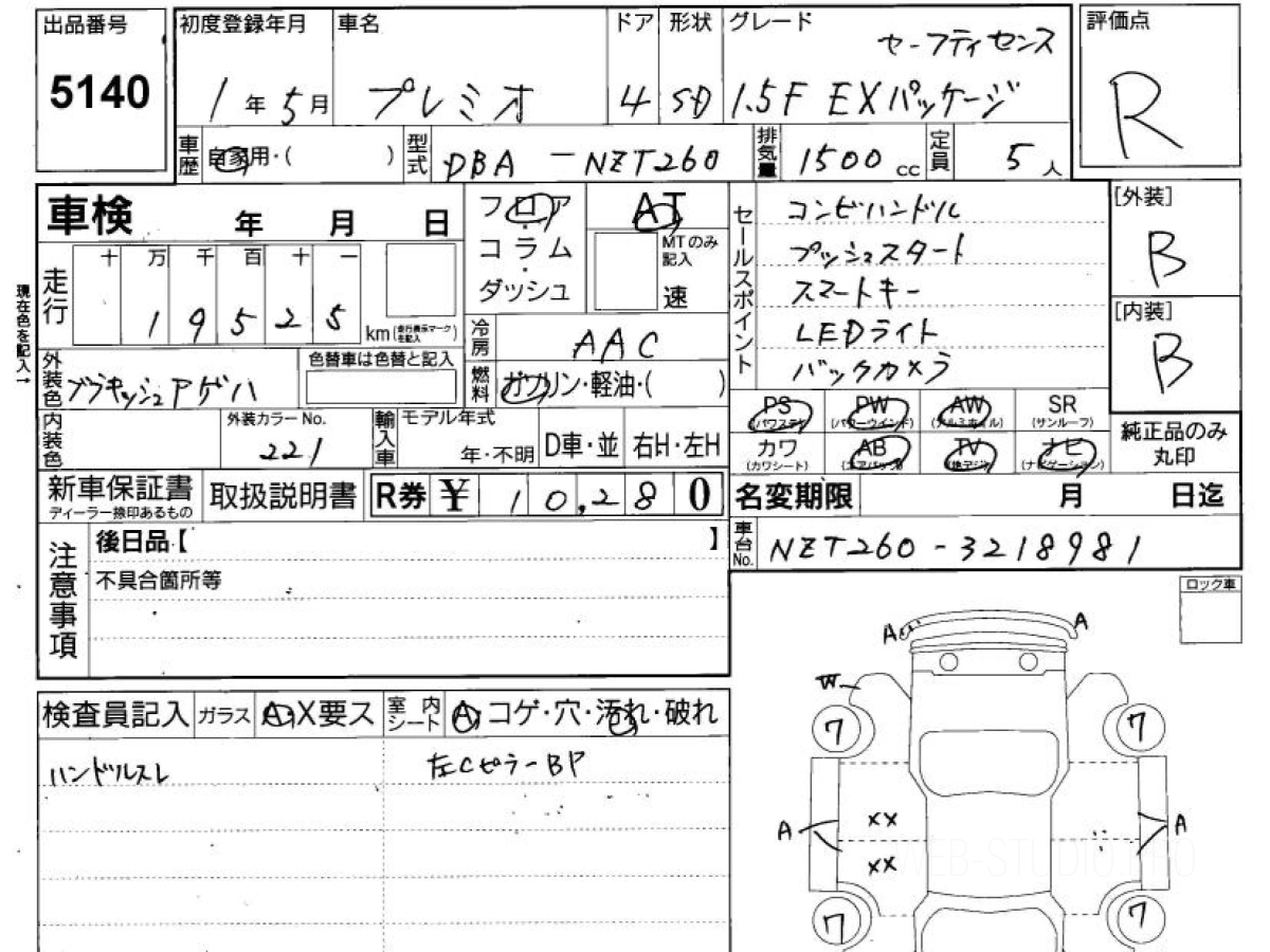 - TOYOTA PREMIO NZT260 2019