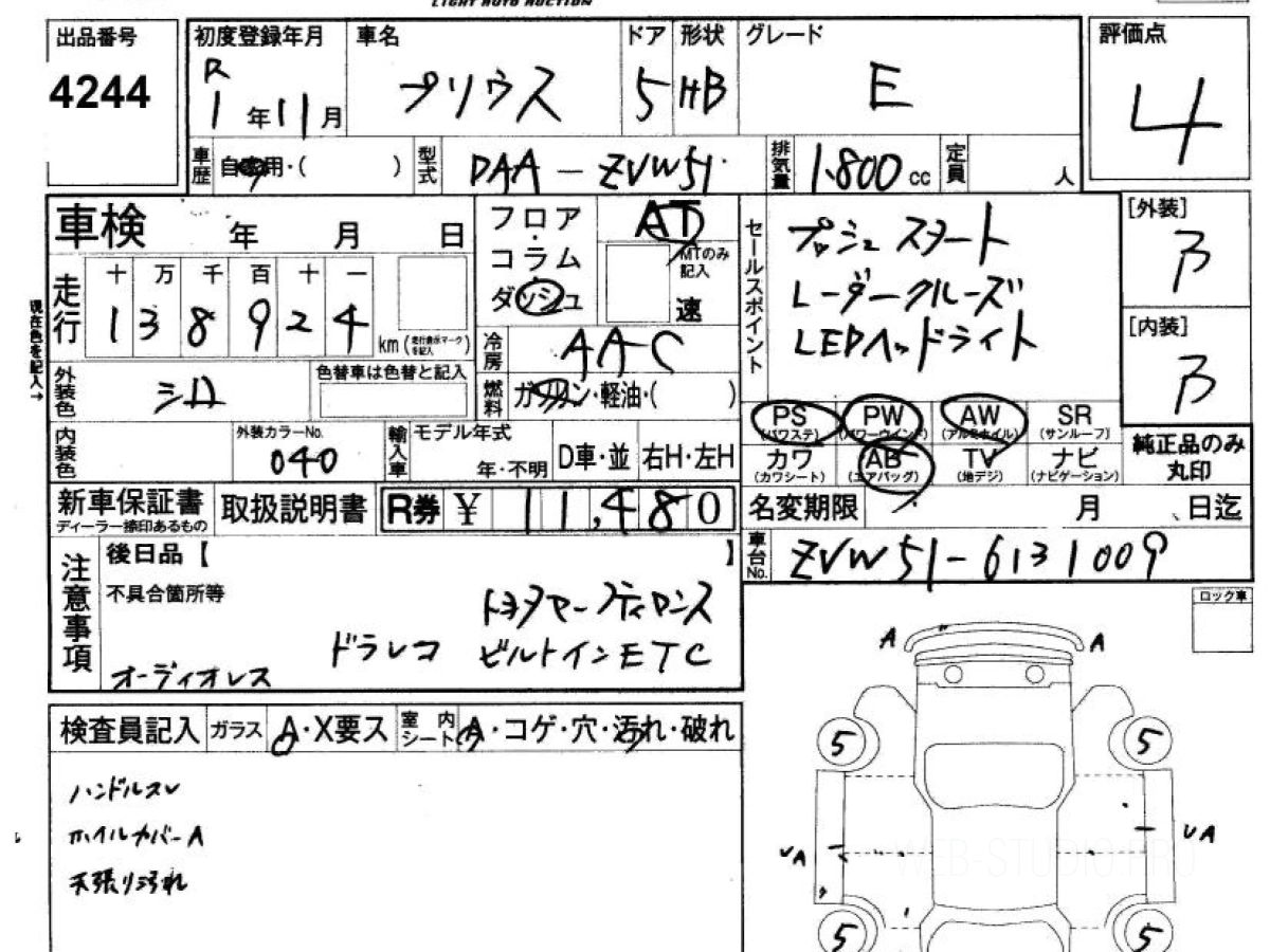 - TOYOTA PRIUS ZVW51 2019