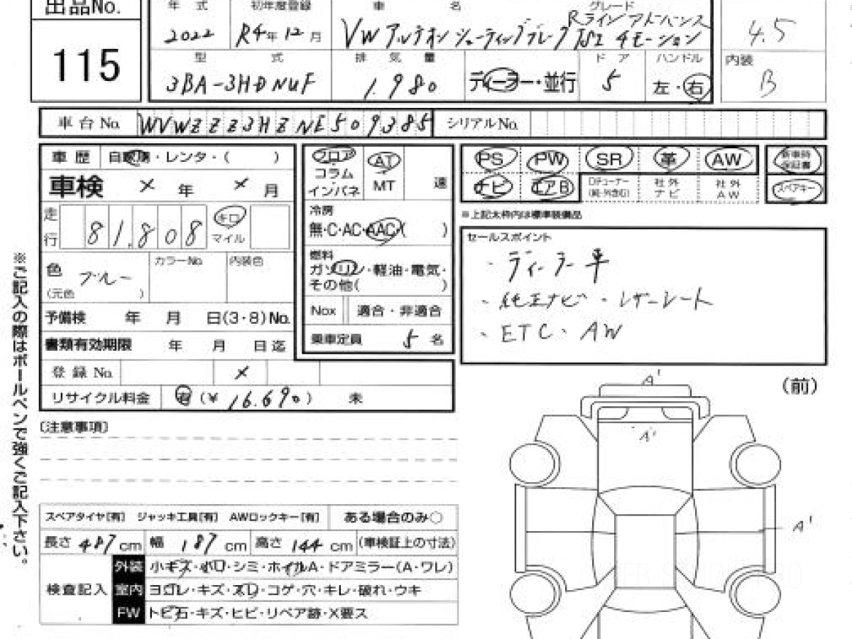 Купить ФОЛЬКСВАГЕН АРТЕОН 2022 года выпуска можно под заказ с аукционов Японии во Владивостоке с доставкой в Москву или любой другой город России.