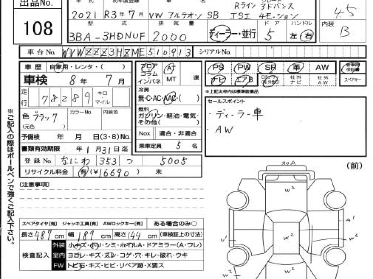 Купить ФОЛЬКСВАГЕН АРТЕОН 2021 года выпуска можно под заказ с аукционов Японии во Владивостоке с доставкой в Москву или любой другой город России.