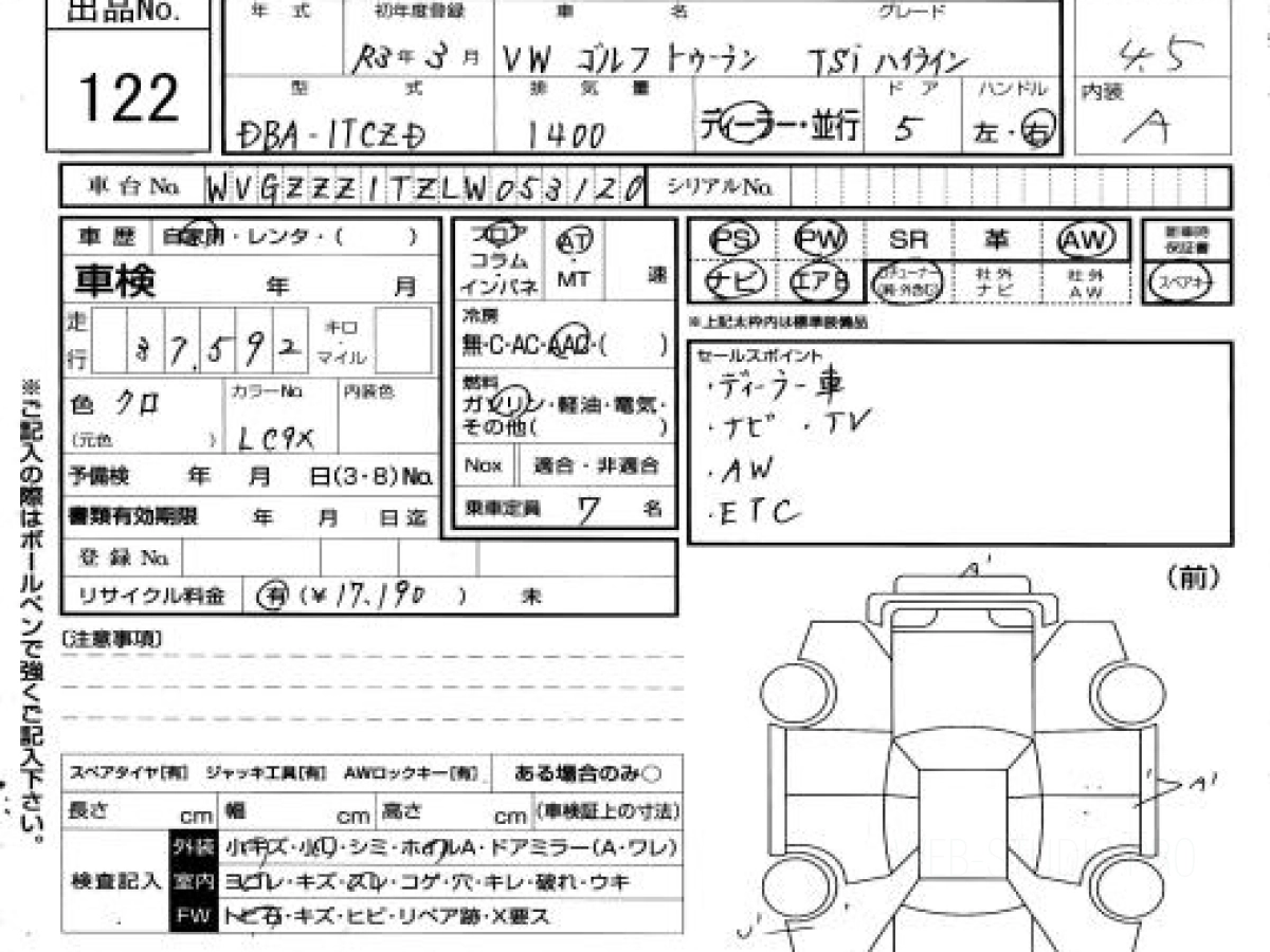 Купить ФОЛЬКСВАГЕН ГОЛЬФ ТУРАН 2021 года выпуска можно под заказ с аукционов Японии во Владивостоке с доставкой в Москву или любой другой город России.