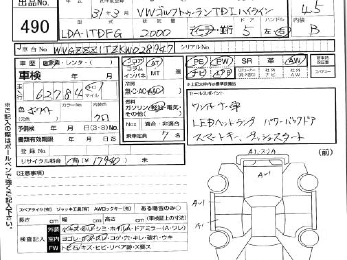 Купить ФОЛЬКСВАГЕН ГОЛЬФ ТУРАН 2019 года выпуска можно под заказ с аукционов Японии во Владивостоке с доставкой в Москву или любой другой город России.