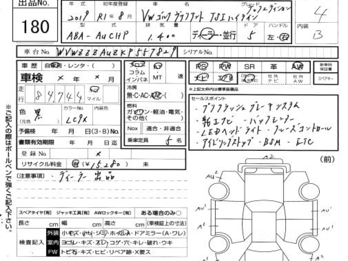 Купить ФОЛЬКСВАГЕН ГОЛЬФ ВАРИАНТ 2019 года выпуска можно под заказ с аукционов Японии во Владивостоке с доставкой в Москву или любой другой город России.