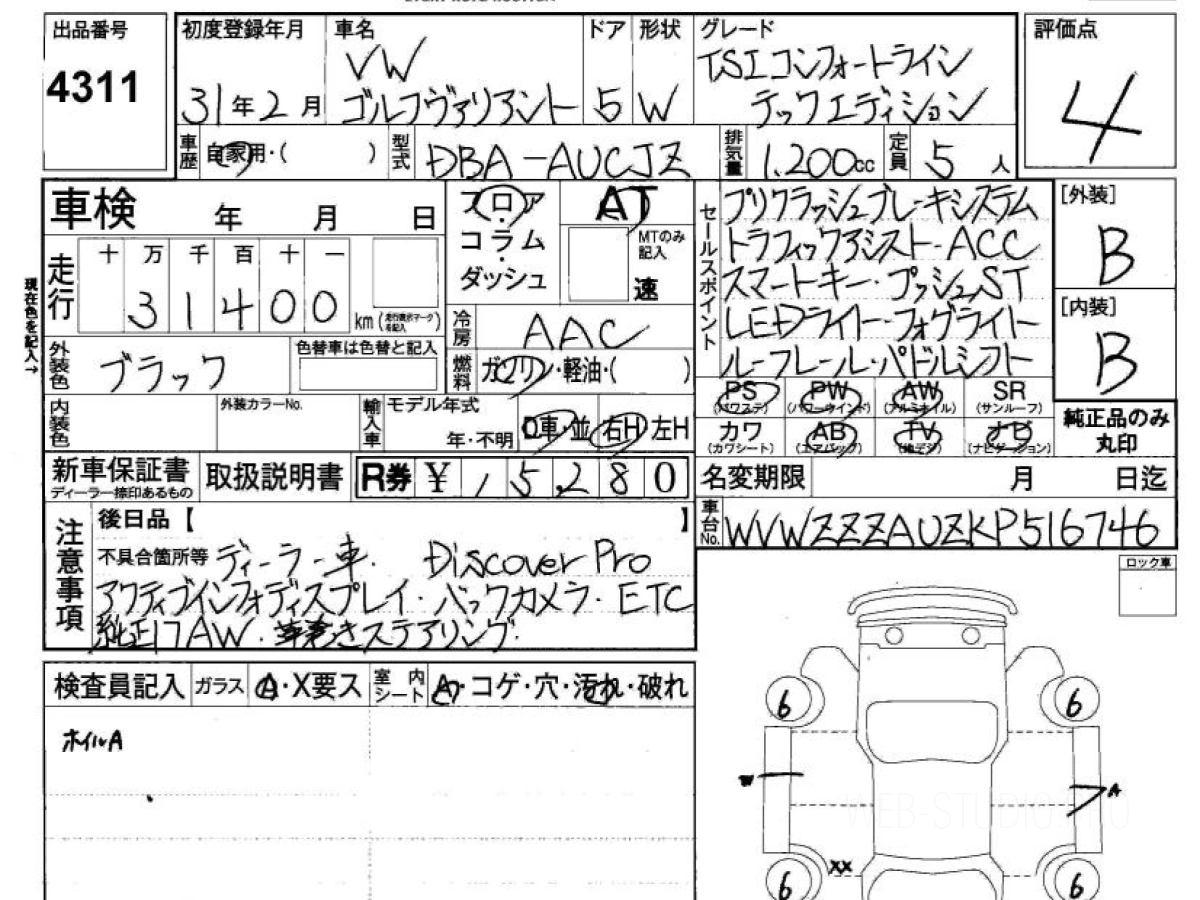 Цена на ФОЛЬКСВАГЕН ГОЛЬФ ВАРИАНТ AUCJZ 2019 с аукционов Японии зависит от состояния авто и комплектации, указана с расчётом пошлины, всех расходов с учетом доставки в Омск.