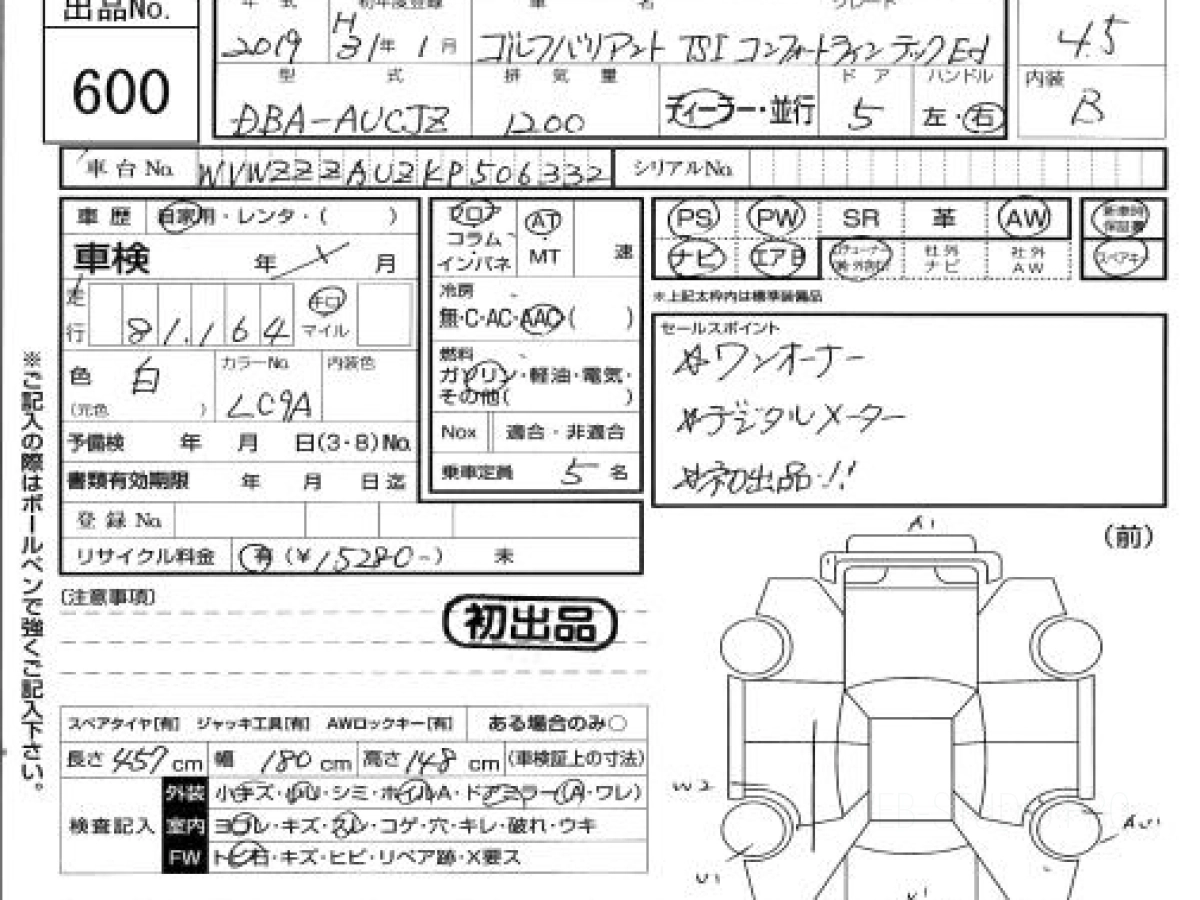 Купить ФОЛЬКСВАГЕН ГОЛЬФ ВАРИАНТ 2019 года выпуска можно под заказ с аукционов Японии во Владивостоке с доставкой в Москву или любой другой город России.