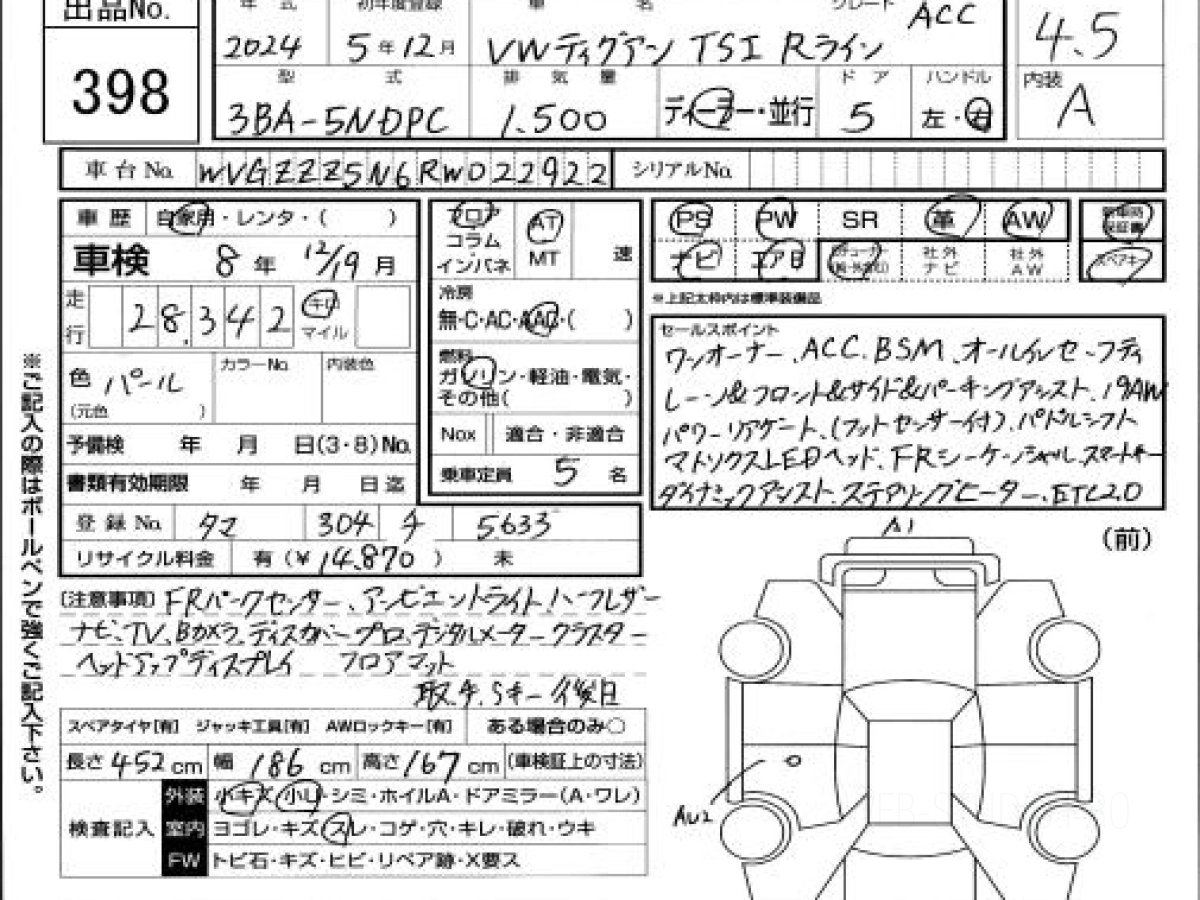 Цена на ФОЛЬКСВАГЕН ТИГУАН 5NDPC 2023 с аукционов Японии зависит от состояния авто и комплектации, указана с расчётом пошлины, всех расходов с учетом доставки в Омск.