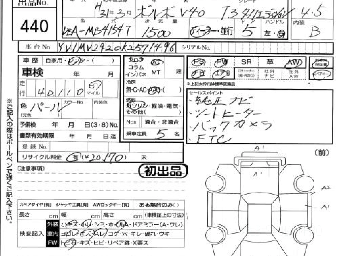 Купить ВОЛЬВО В40 2019 года выпуска можно под заказ с аукционов Японии во Владивостоке с доставкой в Москву или любой другой город России.