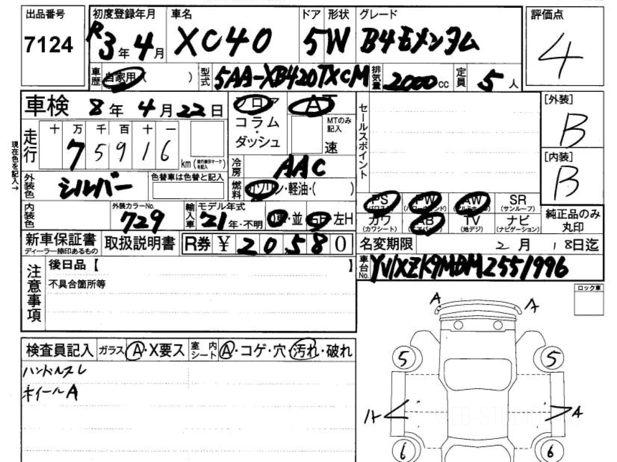 Купить ВОЛЬВО KCЦ40 2021 года выпуска можно под заказ с аукционов Японии во Владивостоке с доставкой в Москву или любой другой город России.
